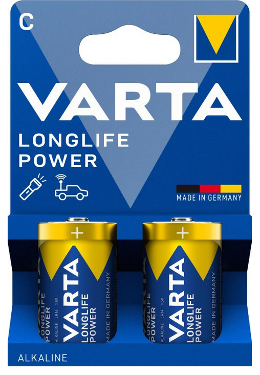 VARTA alkaliparisto 1,5V C-paristo on yleisesti käytössä kotona. Varta paristo on pituudeltaan 61,5mm ja halkaisija 34,2mm. VARTA paristo on laadukas, elohopea vapaa ja pitkäkestoinen.