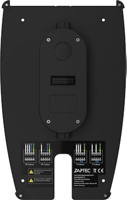 Zaptec Pro -latausaseman taustalevy. Asentamalla sen voit laajentaa latausinfrastruktuuriasi milloin tahansa tulevaisuudessa. Plug and Play -asennus tuleville latausasemille.