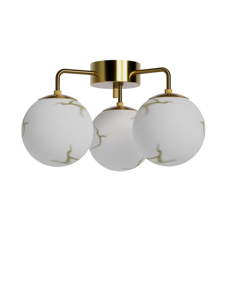Bellaggio-plafondin 3 marmoroitua opaalilasikupua pehmentävät valon kauniiksi hehkuksi. Halkaisijaltaan 50 cm kattoplafondi toimii erityisen hyvin matalissa tiloissa sopien yleisvaloksi eteiseen, olohuoneeseen, keittiöön tai makuuhuoneeseen.