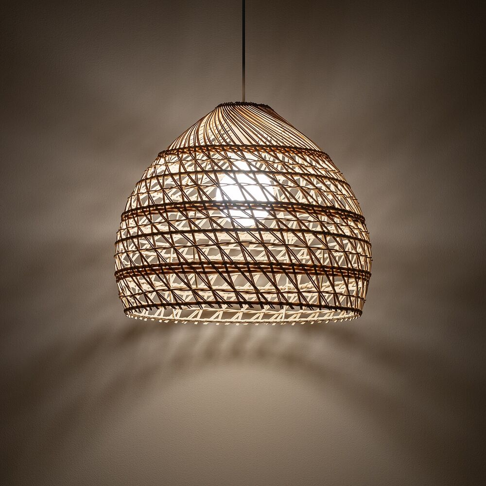 Boho-riippuvalaisin tuo kotiin rennon bohotyylin ja luonnonläheisen ilmeen. Valaisimen punottu rottinkivarjostin suodattaa valon pehmeästi, luoden tilaan lämpimän ja rauhallisen tunnelman.