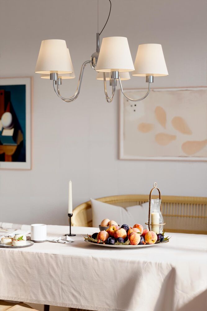 Lynx on näyttävä kattovalaisin, jossa useat tekstiilivarjostimet suodattavat valon pehmeäksi ja miellyttäväksi. Valaisimen ajaton muotoilu sopii monenlaiseen sisustukseen, ja sen suuri halkaisija tekee siitä näyttävän keskipisteen huoneeseen.