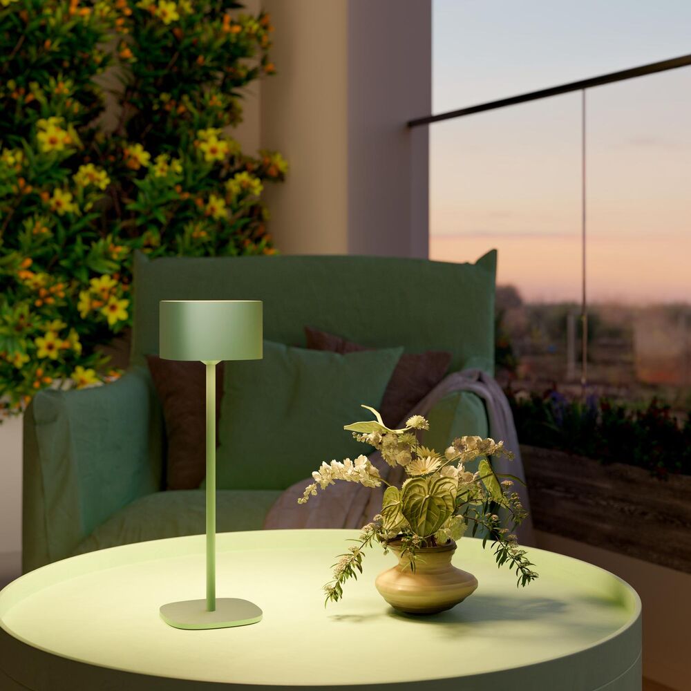 Ladattava Serino-pöytävalaisin kiinteällä LEDillä tuo tilaan modernia eleganssia ja huolettomaa käytännöllisyyttä. Valaisimen lämmin, himmennettävä valo (2700K) luo rentouttavan tunnelman ja roiskeenkestävä rakenne (IP44) sekä 6 tunnin akunkesto tekevät Serinosta oivan kumppanin esimerkiksi parvekkeelle, puutarhaan tai mökille.