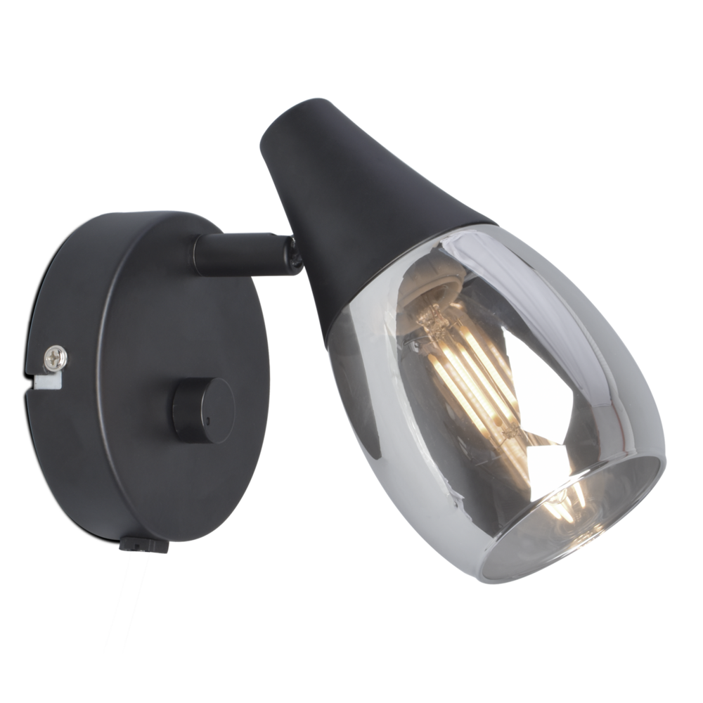 Moon-seinävalaisimen metallinen mattamusta runko ja savunharmaa lasikupu muodostavat pehmeän siluetin, joka suodattaa valon kauniiksi hehkuksi. Seinälevyssä sijaitsevan integroidun himmentimen avulla muutat valon hetkessä tunnelmallisesta hehkusta tehokkaaseen lukuvaloon. Sopii täydellisesti sängynpäätyyn, eteiseen tai työpisteelle valonlähteeksi.